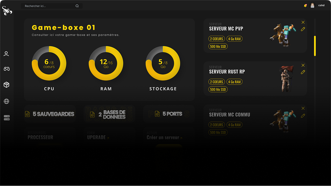Une game-box est un service complet conçu pour héberger plusieurs serveurs de jeux en même temps réels, offrant une expérience de jeu fluide et sans lag.